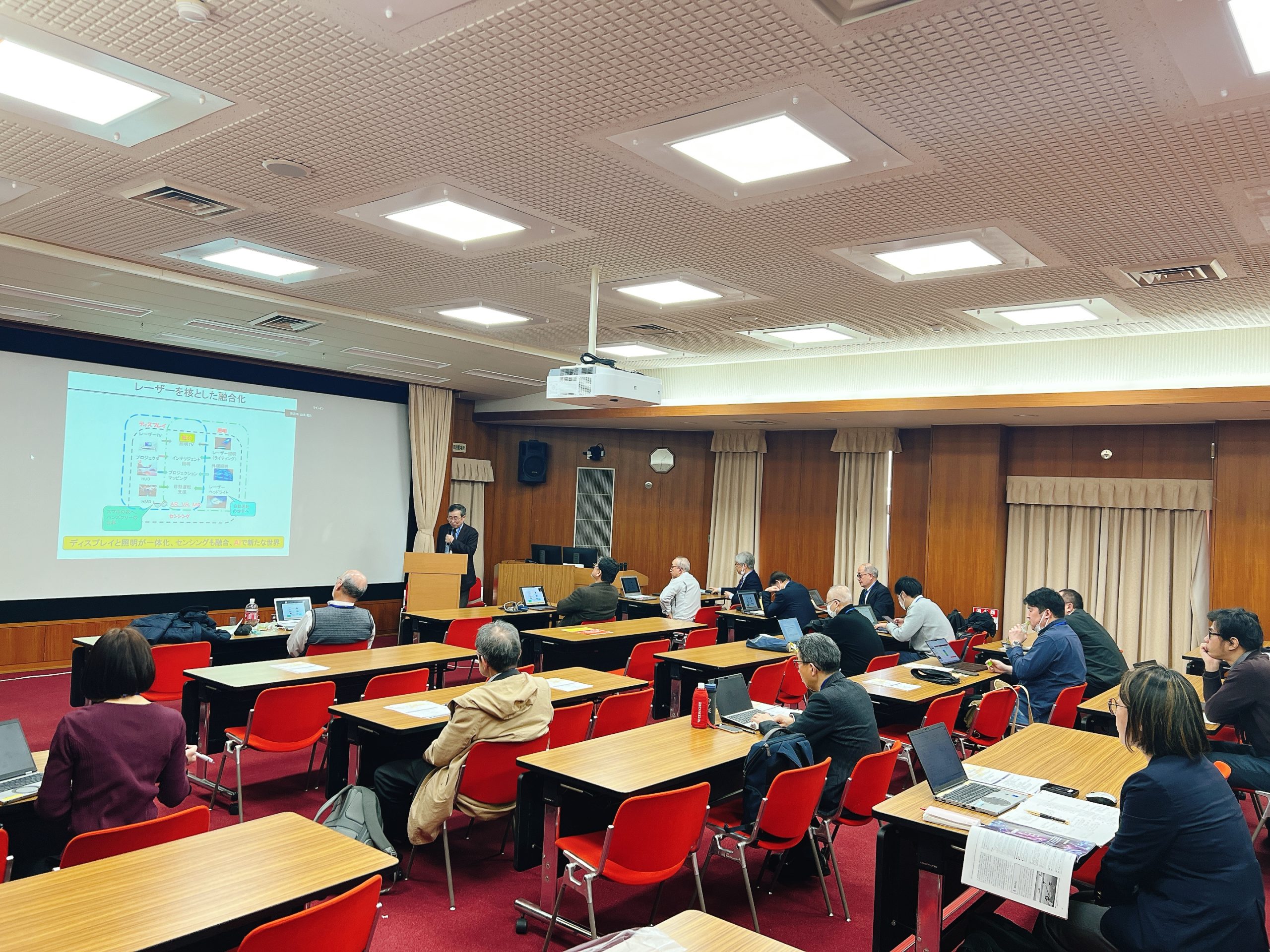 【開催いたしました】3月2日(水)第11回可視光半導体レーザー応用シンポジウム ~可視光半導体レーザーの多方面への展開~ 2026年03月06日 コンソーシアム主催の以下シンポジウムにつきまして、おかげさまで大好評のうちに無事終わることができました。 参加者は会場での参加、オンライン参加合わせて約50名でした。第11回可視光半導体レーザー応用シンポジウム ~可視光半導体レーザーの多方面への展開~